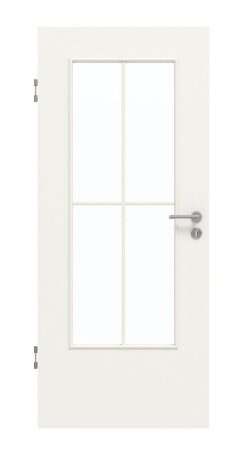 • Zakres dostawy: Skrzydło drzwiowe, zawiasy, zamek wielozadaniowy, rama z szybami, szklenie
