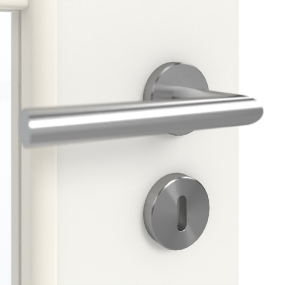 • Standardowe wykonanie kasety zamka: Zamek pokojowy BB: klasa 1, długość trzpienia 55 mm, listwa czołowa 20/235, kolor srebrny