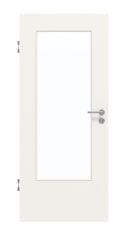 Atrakcyjna drzwi wewnętrzne w dekorze HPL białego lakieru 9016 z pięknym przeszkleniem: