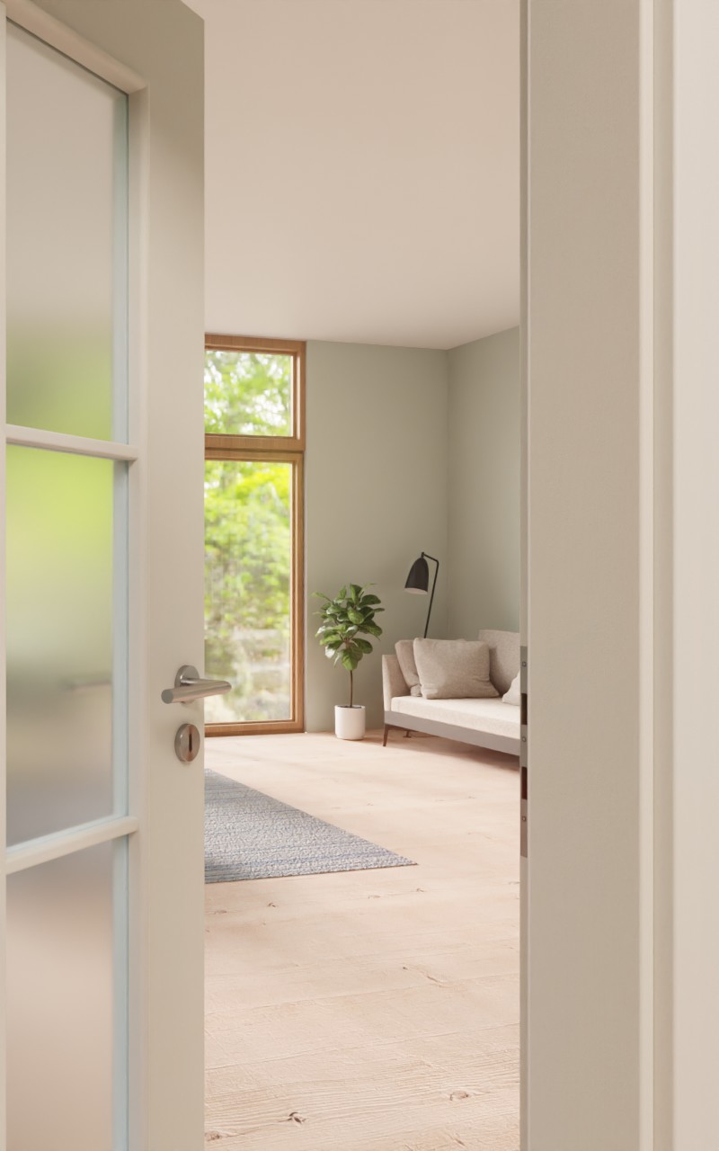 Dla większego komfortu w Twoim domu: Nowoczesny styl wnętrza zapewniają drzwi wewnętrzne LA-DIN-Sprosse SP4 w kolorze białym ze strukturą Premium firmy Garant.
