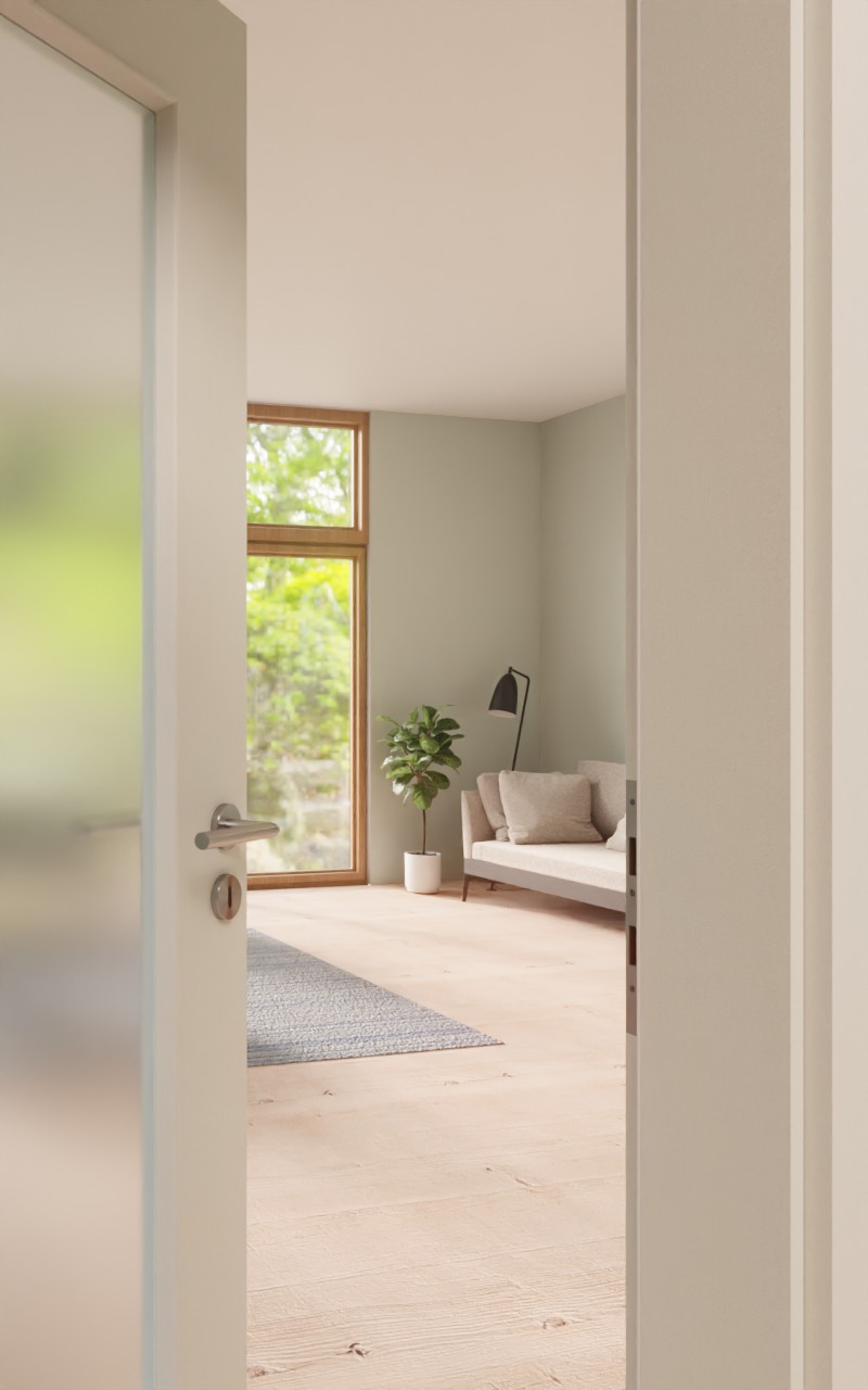 Wytrzymałe drzwi wewnętrzne w dekorze HPL Biała Struktura Premium z atrakcyjnym przeszkleniem: