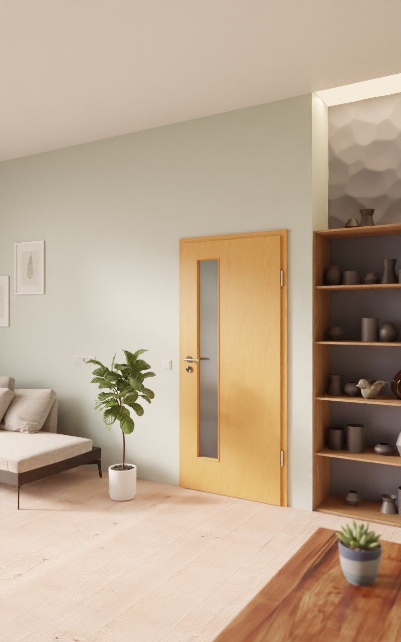 Drzwi wewnętrzne odporne na ścieranie w dekorze HPL buk ekskluzywny z atrakcyjnym przeszkleniem: