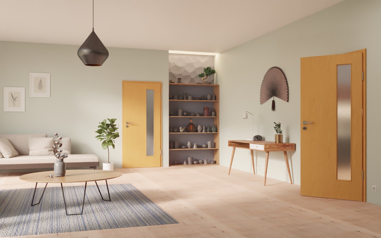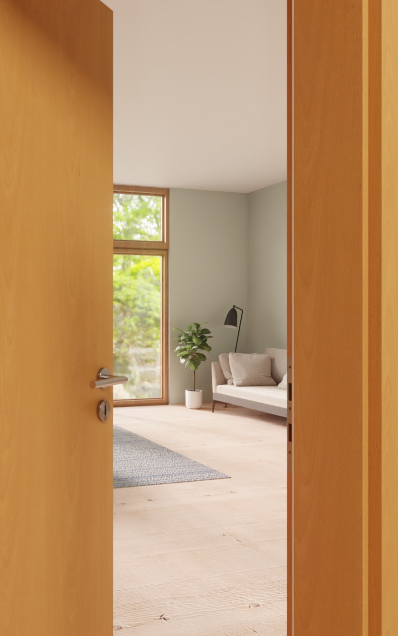 Praktyczne drzwi wewnętrzne w dekorze HPL buk ekskluzywnie do pomieszczeń mieszkalnych lub biurowych:
