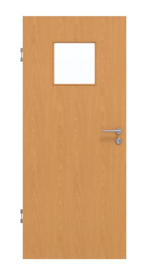 Wytrzymałe drzwi wewnętrzne w dekorze HPL buk ekskluzywny z pięknym przeszkleniem: