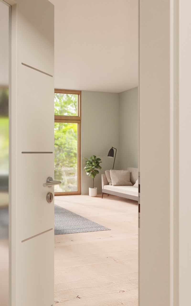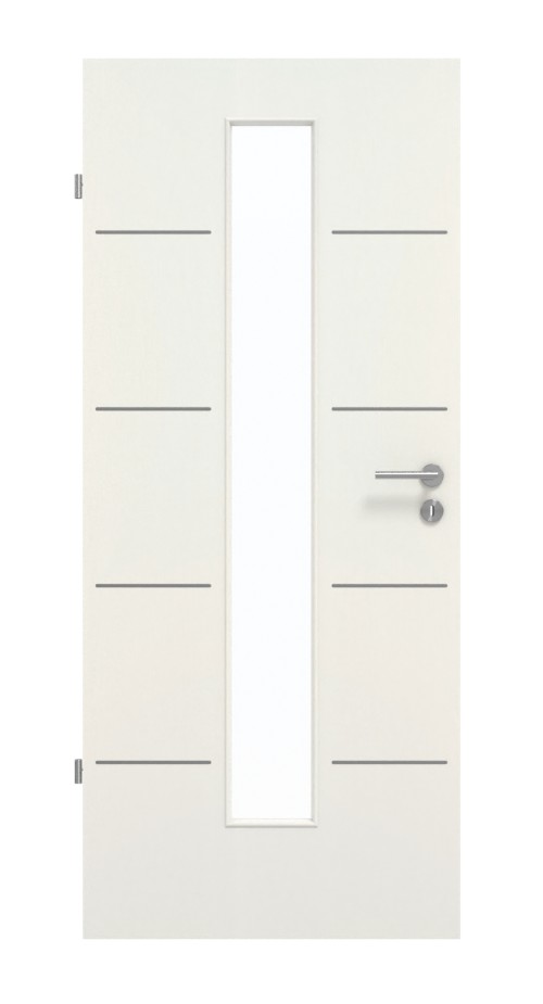 Przyjazny wygląd charakteryzuje się wąskim, pionowym otworem świetlnym . Po obu stronach skrzydło drzwi zdobią delikatne lizeny . Dyskretna struktura sprawia, że piękno dekoru biały Struktura Premium jest nie tylko widoczne, ale także wyczuwalne. Trwała i łatwa w pielęgnacji powierzchnia CPL jest odporna na zarysowania i uderzenia.
