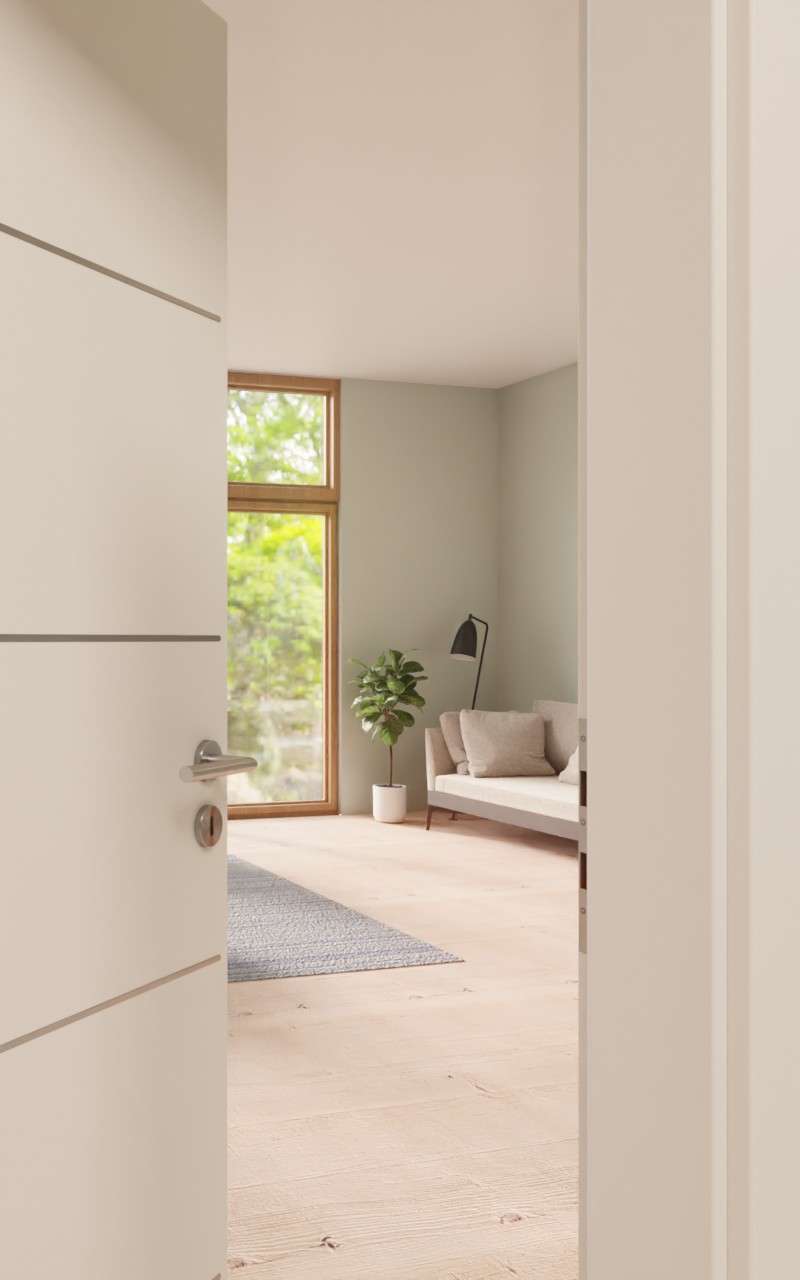 Stylowe połączenie stabilności i praktyczności w codziennym użytkowaniu: Drzwi designerskie Corona 830 w kolorze CPL biały lakier 9016 firmy Garant przyciągają wzrok eleganckimi detalami.