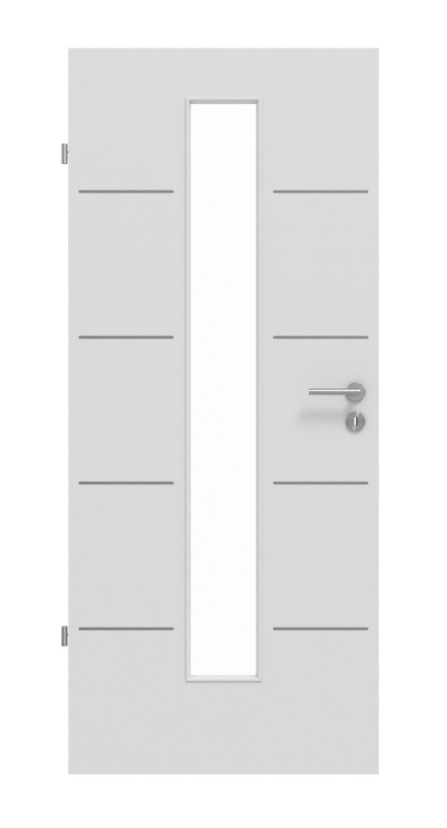 Wbudowany pośrodku wąski szklany wycięty fragment jest po obu stronach podkreślony przez po cztery krótkie lizeny . Powierzchnia CePaL Silver Grey zachwyca nowoczesnym, jednolitym odcieniem szarości. Oprócz atrakcyjnego wyglądu, łatwa w pielęgnacji warstwa wierzchnia z CPL wyróżnia się również odpornością na uderzenia i zarysowania.