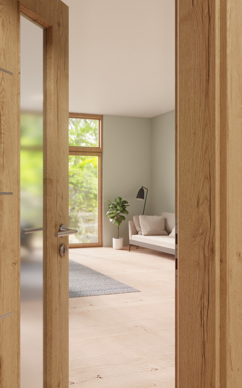 Stabilność i elegancja w jednym: Drzwi designerskie Corona 834 w wykończeniu powierzchni CPL Authentic dąb szczelinowy firmy Garant nadadzą domowi cechy szczególne.