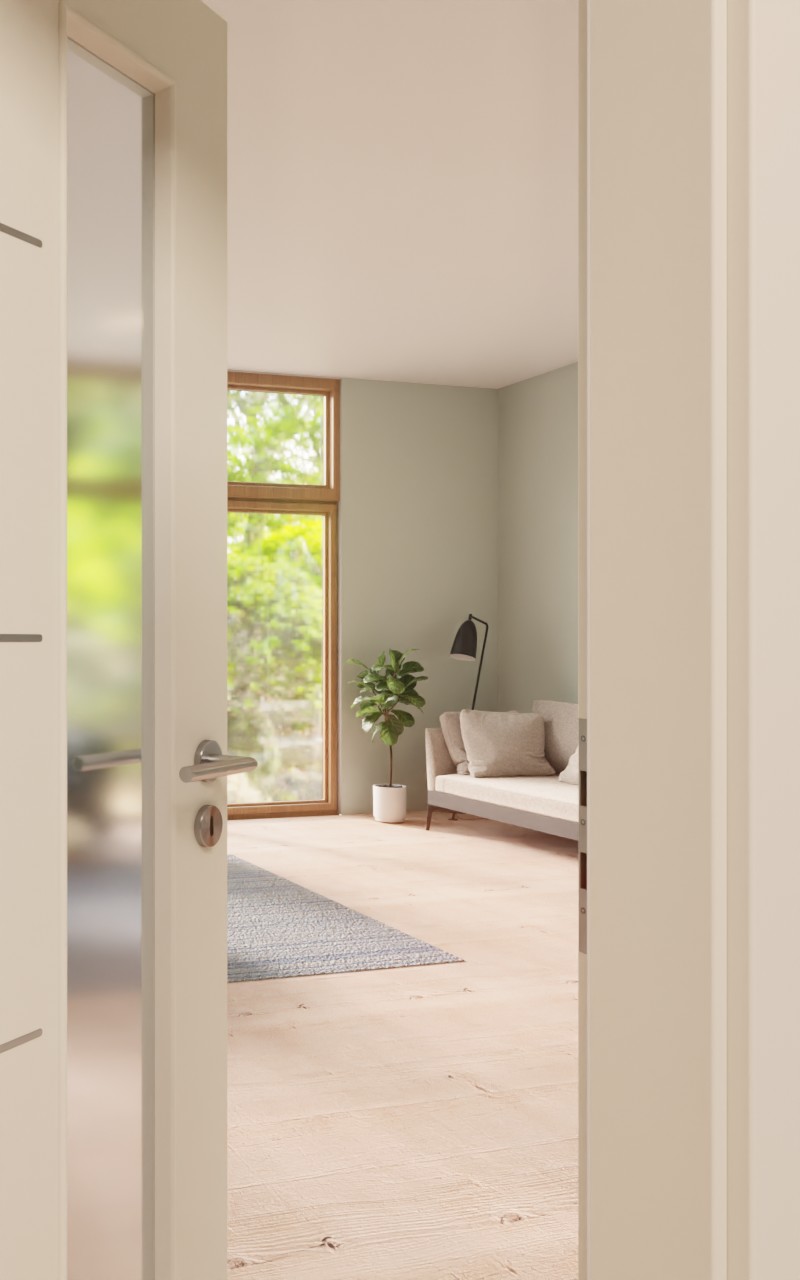 Dzięki wąskiemu, długiemu wycięciu w szybie do ciemnych pomieszczeń może wpadać dodatkowe światło. Po stronie oprawy cztery delikatne listwy stanowią ładny akcent. Powierzchnia zachwyca świeżym i zachęcającym designem, który przypomina stylowy biały lakier 9010. Odporna na uderzenia i zarysowania warstwa wierzchnia CPL jest bardzo łatwa w czyszczeniu.