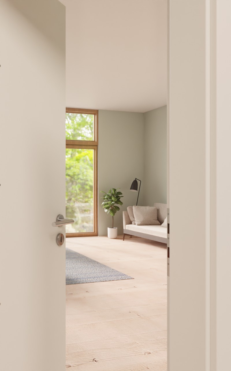 Drzwi zyskują wyjątkowy wygląd dzięki czterem lizenom umieszczonym po bokach, które sięgają mniej więcej do połowy skrzydła drzwiowego. Dzięki neutralnej kolorystyce dekor biały lakier 9016 stanowi idealną bazę dla pomysłów aranżacyjnych. Odporna na uderzenia i zarysowania warstwa wierzchnia z CPL jest bardzo łatwa w czyszczeniu.