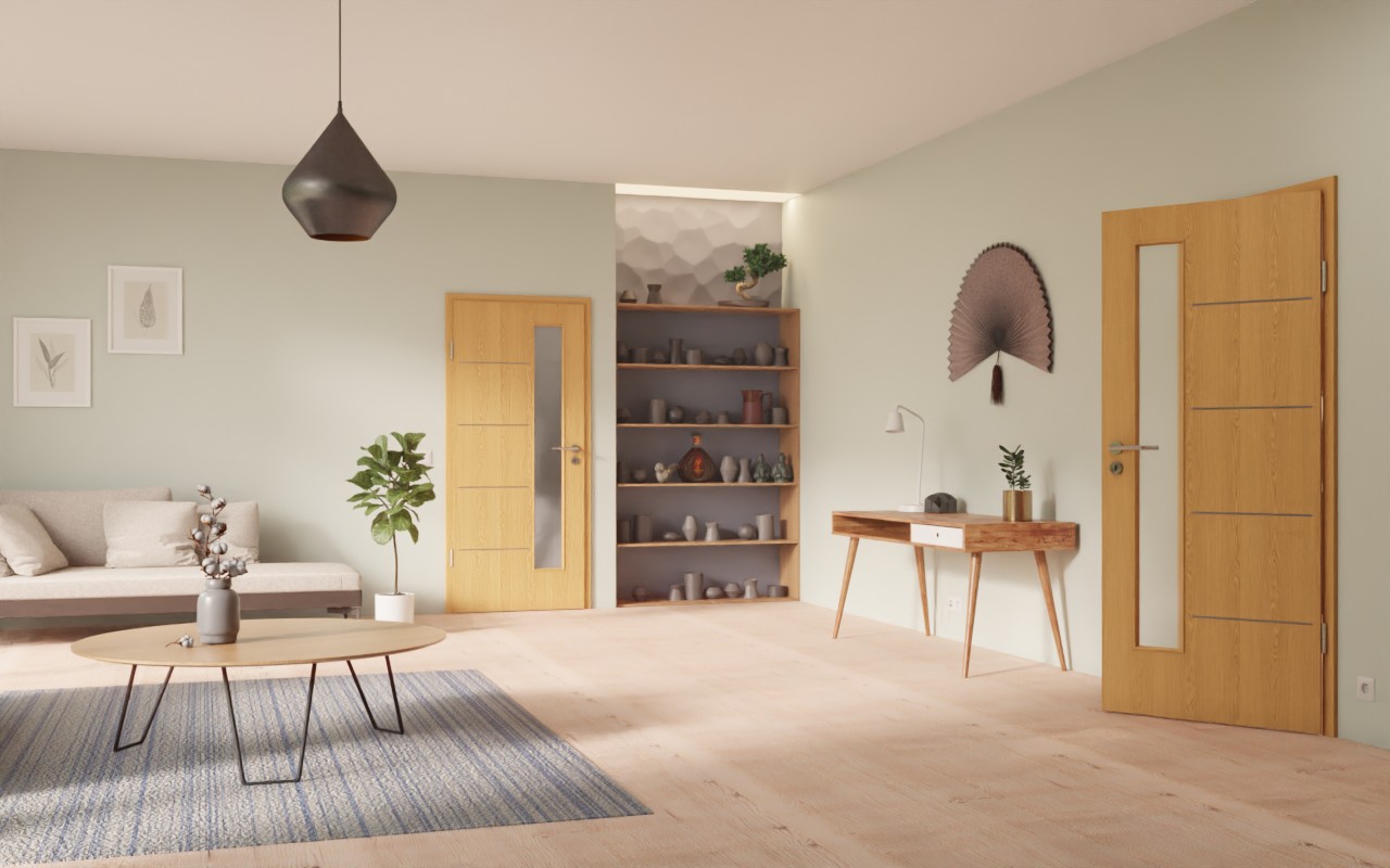 Drzwi designerskie ozdobione listwami z rdzeniem pełnoobciążeniowym i trwałą powłoką CPL: