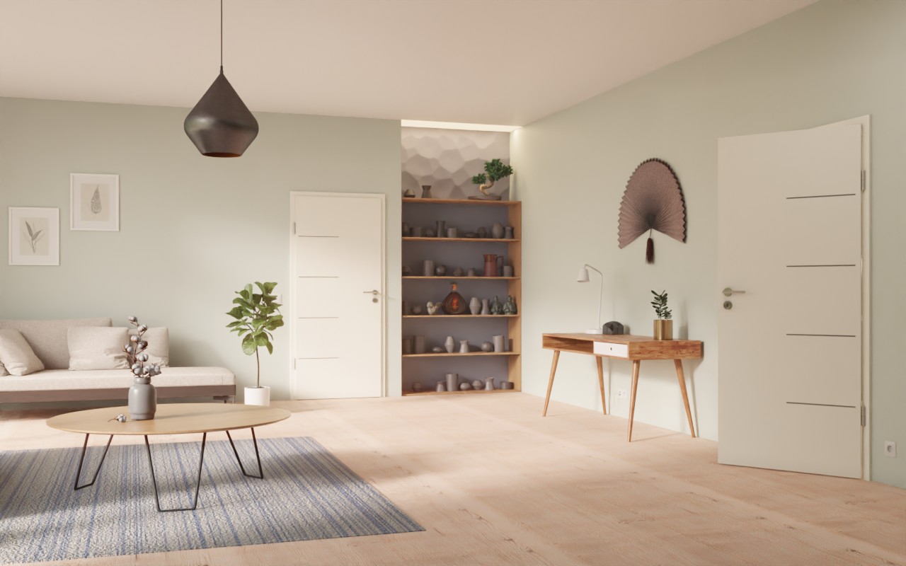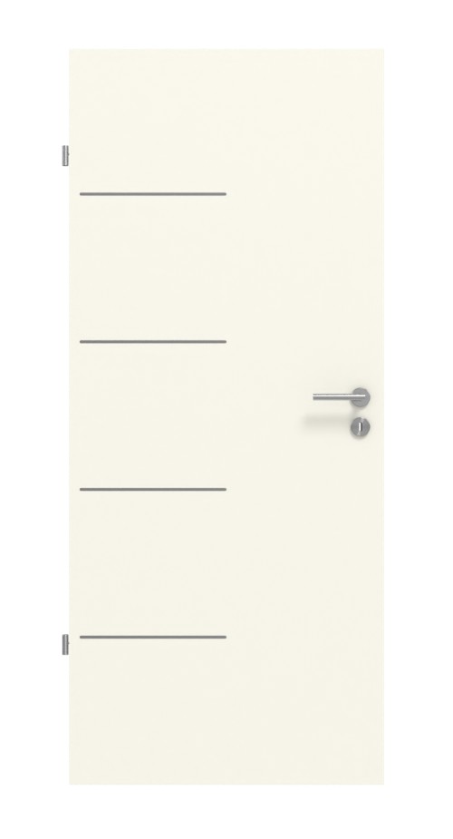 Cztery krótkie, równomiernie rozmieszczone lizeny nadają skrzydłu drzwiowemu nowoczesny wygląd. Biała powierzchnia Snow White zapewnia odcień, który doskonale komponuje się z każdym wystrojem wnętrza. Odporna na zarysowania warstwa wierzchnia CPL doskonale radzi sobie z codziennymi uderzeniami.