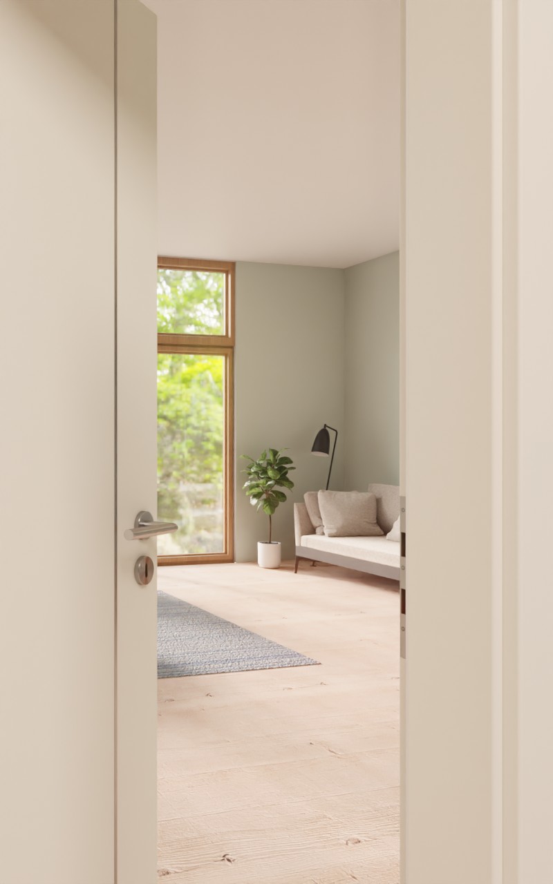 Obok klamki wzdłuż całego skrzydła drzwi biegnie ozdobna liza . Dzięki swojej powierzchni w kolorze bieli perłowej model ten idealnie harmonizuje z nowoczesnym wystrojem wnętrz. Oprócz atrakcyjnego wyglądu, łatwa w pielęgnacji warstwa wierzchnia z CPL przekonuje również swoją odpornością na uderzenia i zarysowania.