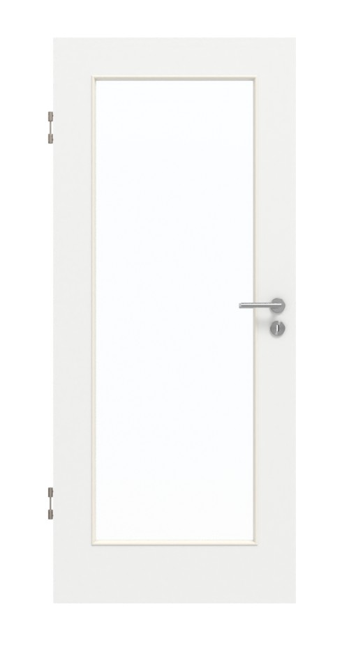 Zapraszające drzwi pokojowe w dekorze HPL D354-60 Designer White o grubości skrzydła drzwiowego wynoszącej około 40 mm: