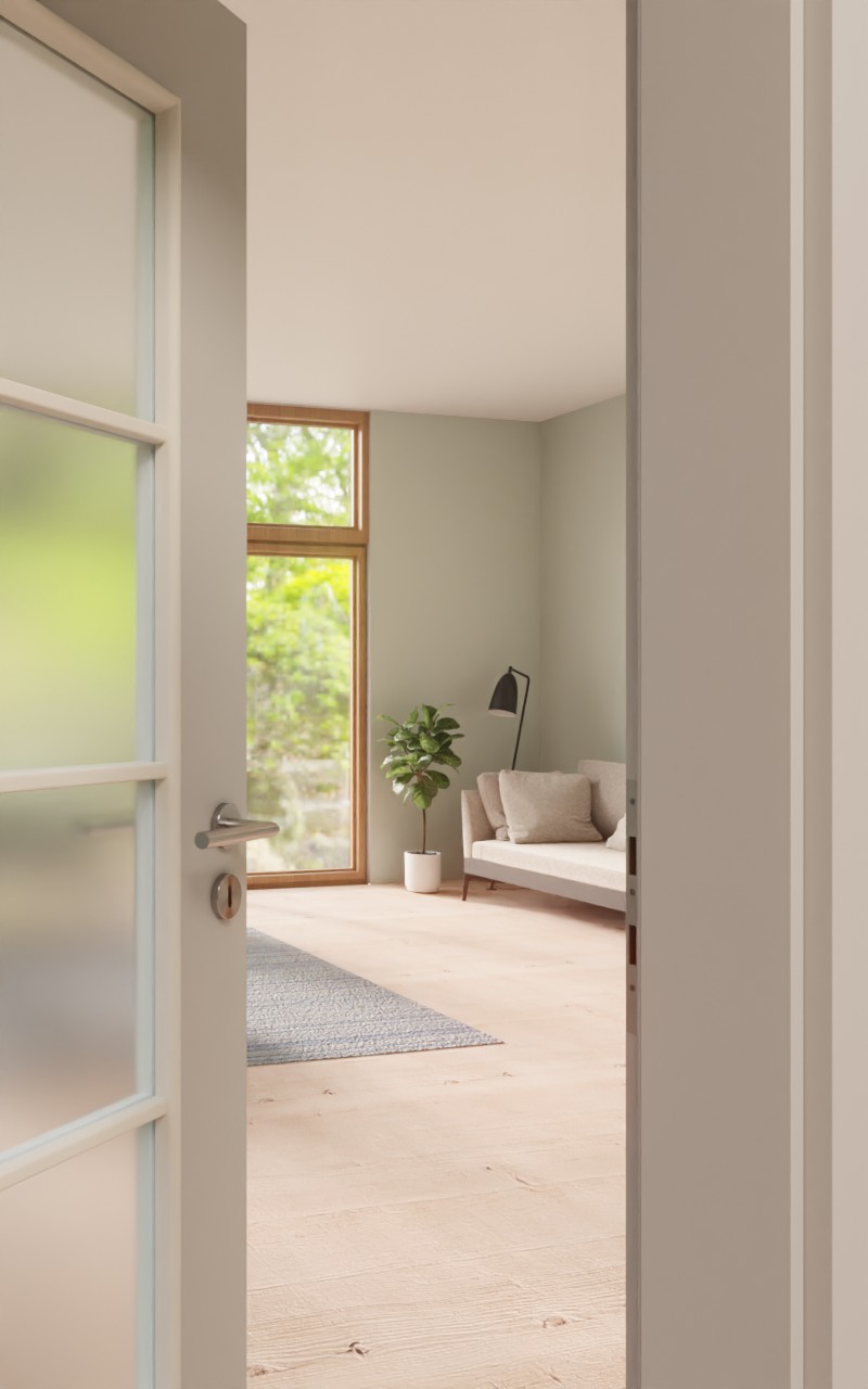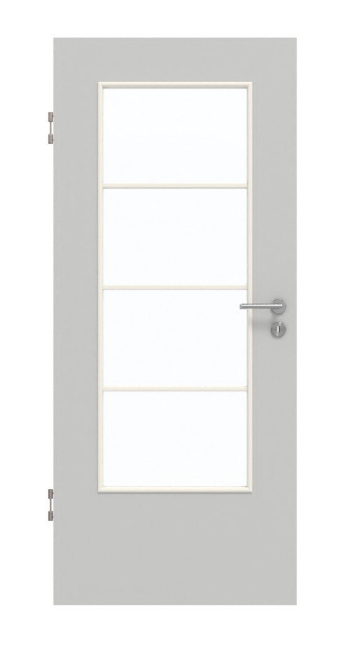 Dzięki trzem poziomym prętom duży otwór okienny nadaje mu nowoczesny wygląd. Dyskretny szyk wyróżnia szare drzwi wewnętrzne. Jasny odcień Dove Grey prezentuje się nowocześnie i doskonale komponuje się z innymi kolorami. Łatwa w pielęgnacji warstwa wierzchnia z HPL wyróżnia się również wysoką wytrzymałością.