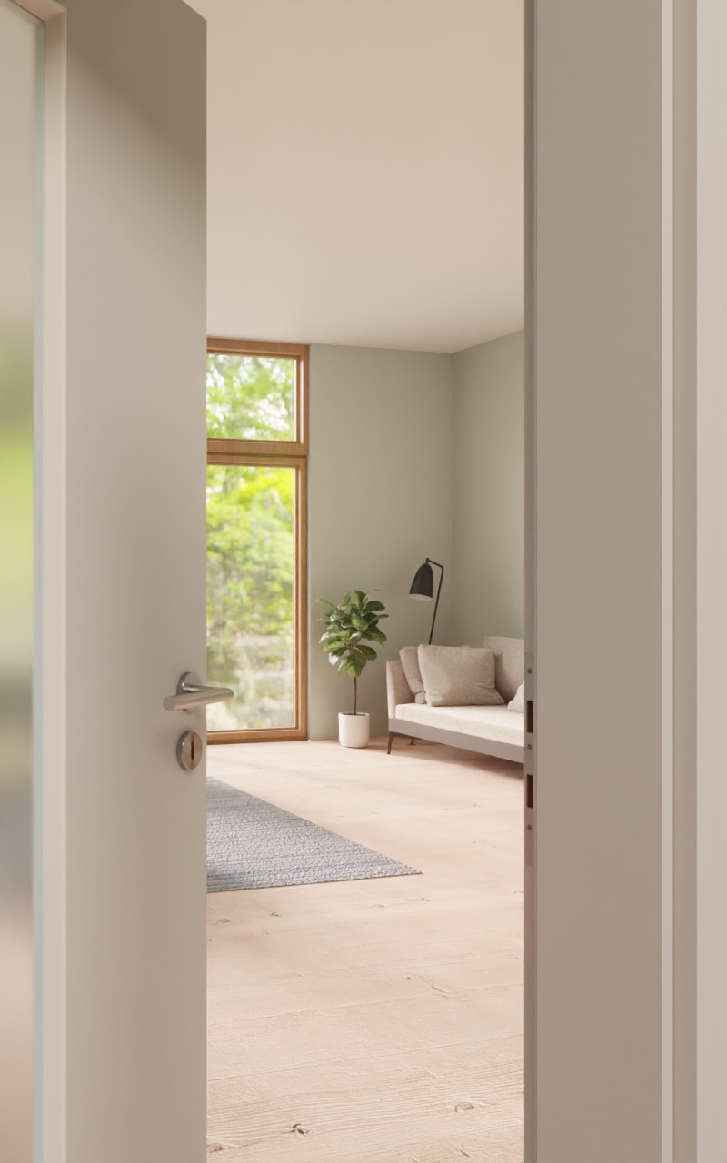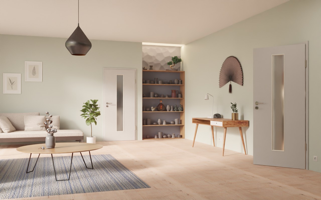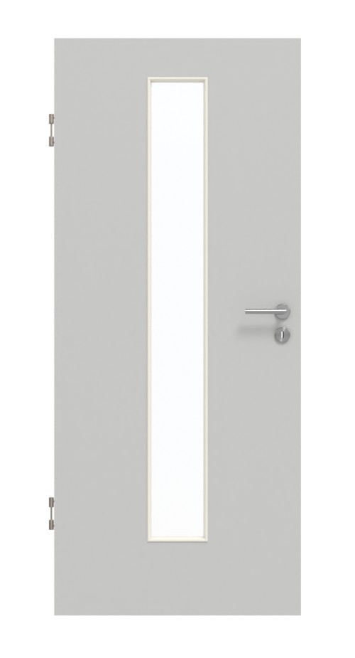 Wytrzymałe drzwi wewnętrzne w dekorze HPL D92-60 Dove Grey z eleganckim przeszkleniem: