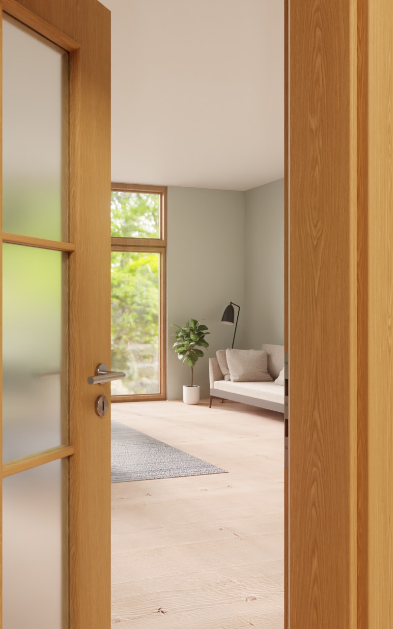 Nowoczesne przeszklenie i wysokiej jakości cechy: Drzwi wewnętrzne LA-DIN-Sprosse SP4 w dębie premium renomowanego producenta Garant wprowadzają stylowe akcenty.