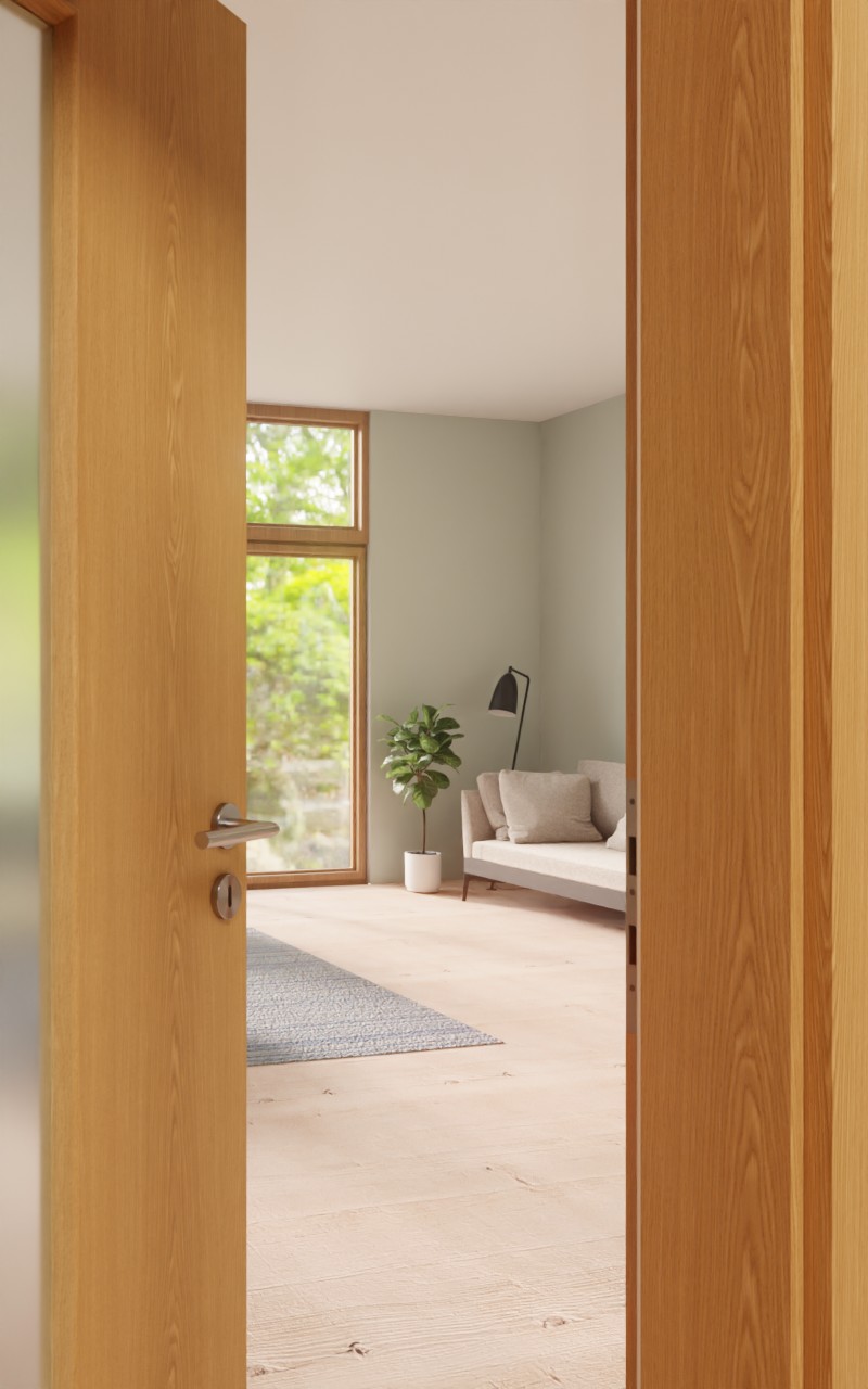 • Zakres dostawy: Skrzydło drzwiowe, zawiasy, zamek wielozadaniowy