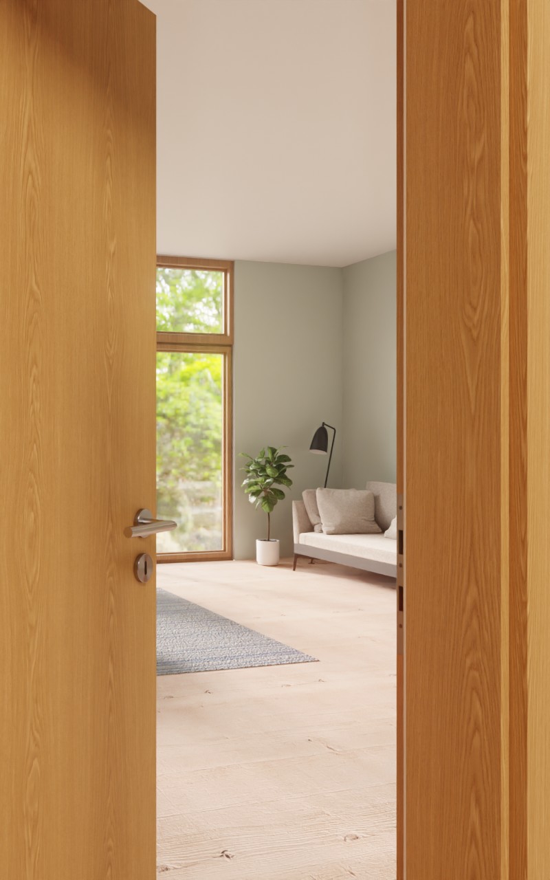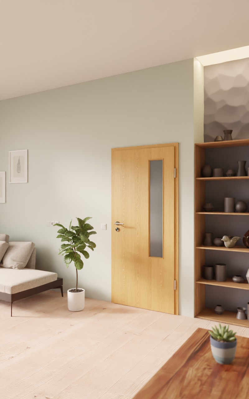 Praktyczne drzwi wewnętrzne w dekorze HPL dąb premium z atrakcyjnym przeszkleniem: