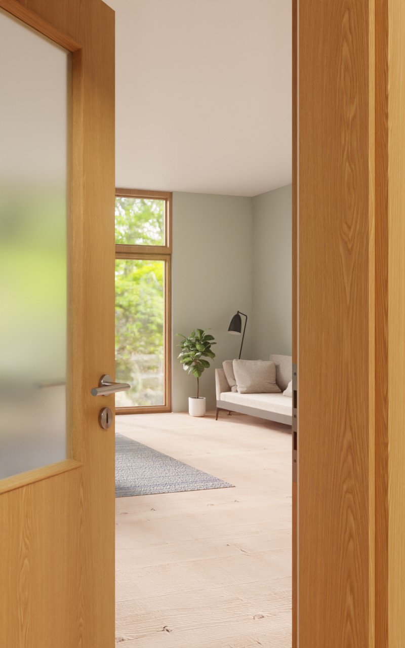 Stylowa drzwi wewnętrzne w dekorze HPL dąb premium o grubości skrzydła drzwiowego wynoszącej około 40 mm: