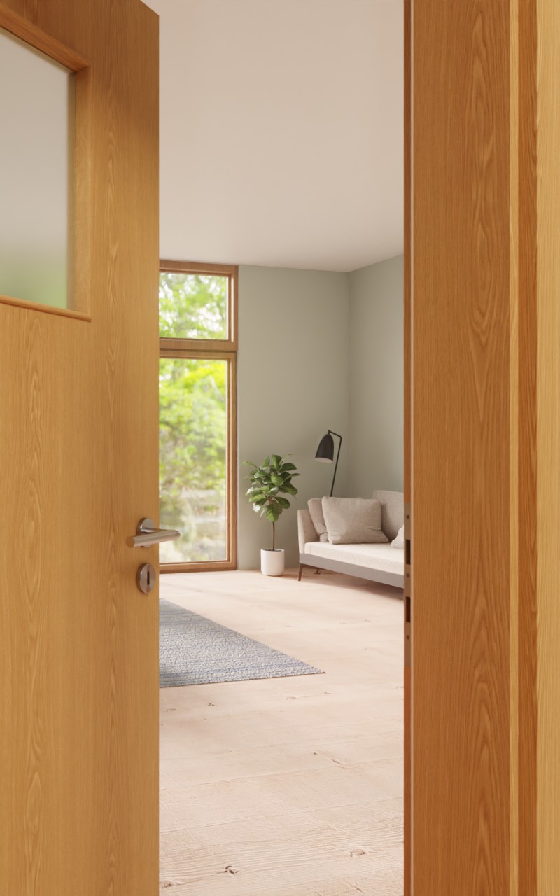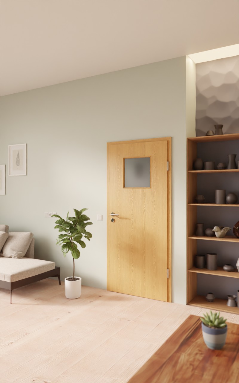 Wytrzymałe drzwi wewnętrzne w dekorze HPL Dąb Premium z atrakcyjnym przeszkleniem:
