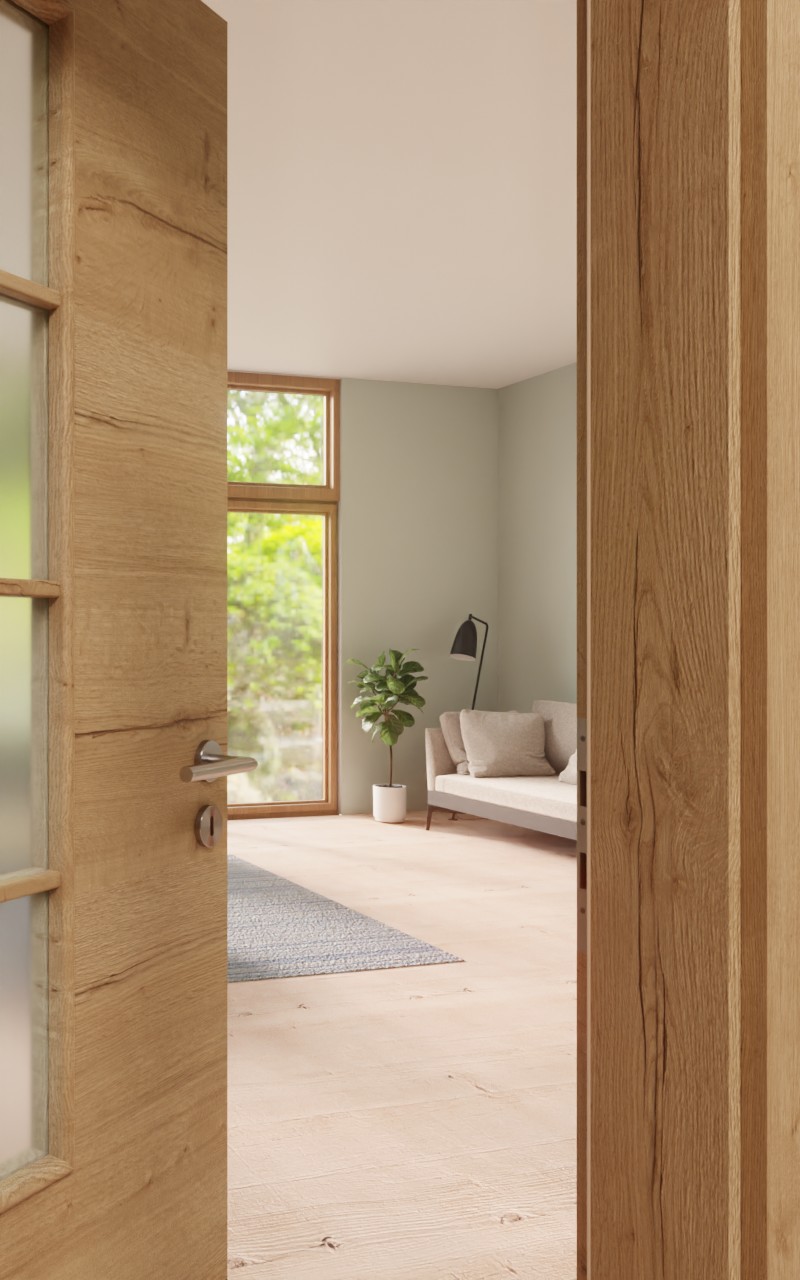 Drzwi wewnętrzne klasy premium w dekorze HPL Quer Authentic Risseiche do pomieszczeń prywatnych lub biur:
