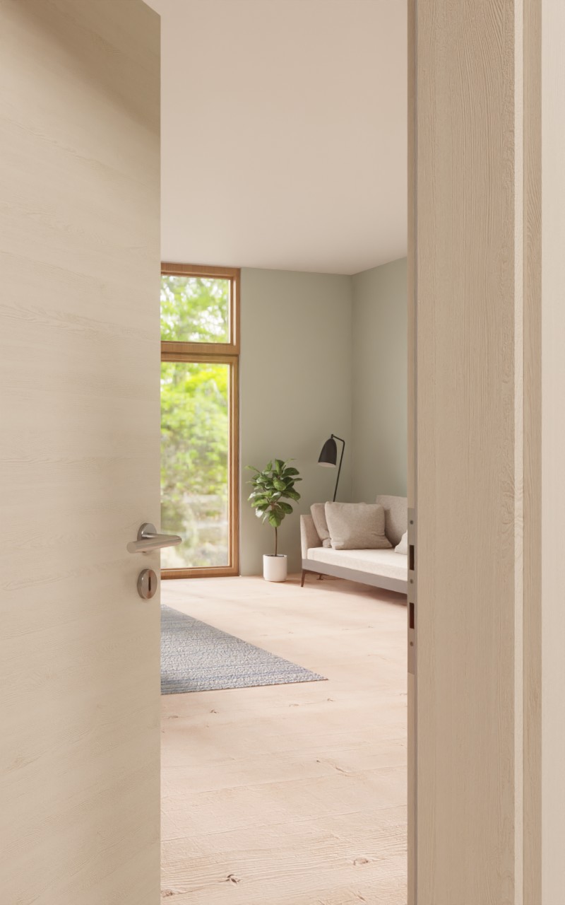 Wysokiej jakości drzwi wewnętrzne w dekorze HPL Quer Authentic Perl z atrakcyjnym przeszkleniem: