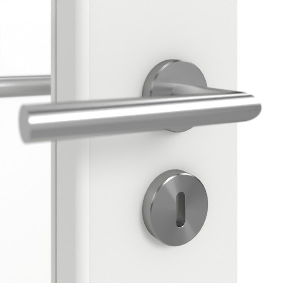 • Standardowe wykonanie kasety zamka: Zamek pokojowy BB: klasa 1, długość trzpienia 55 mm, listwa czołowa 20/235, kolor srebrny