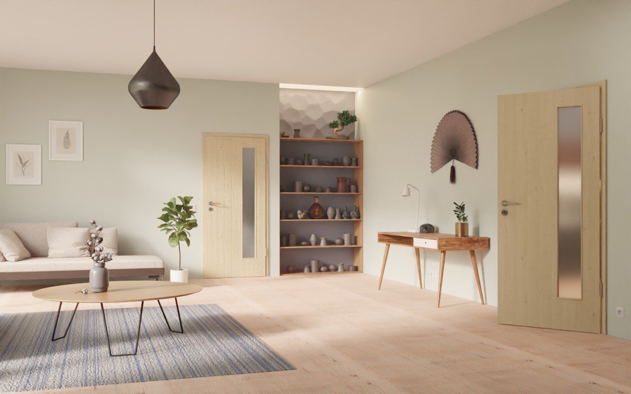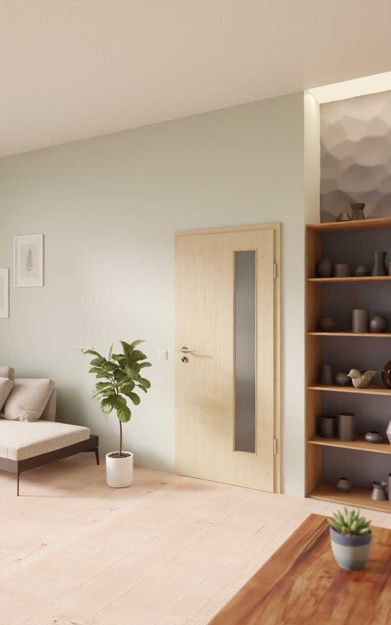 Dzięki beżowemu wzorowi Natura Ahorn , który charakteryzuje się autentycznym wyglądem drewna, stworzysz w swoim domu naturalną i przytulną atmosferę. Wzdłuż całej długości skrzydła drzwiowego znajduje się wąskie wycięcie na szybę po stronie zawiasów.