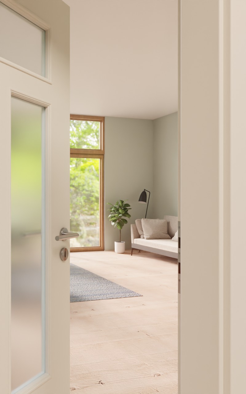 Stylowa drzwi wewnętrzne z białym lakierem i pełnymi rdzeniami: