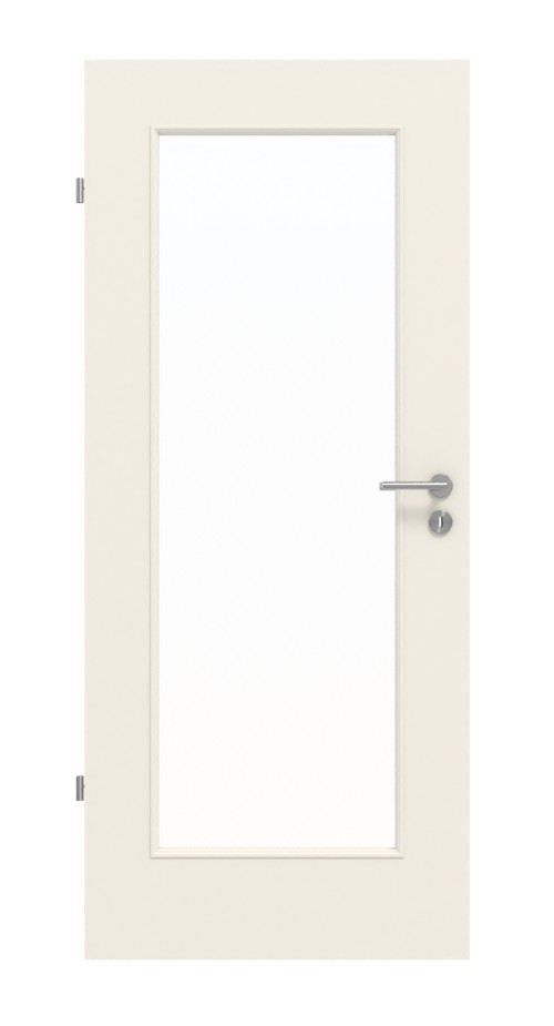 Duże przeszklenie stanowi centralny element ponadczasowego designu. Jedwabiście matowe białe wykończenie gustownie podkreśla czysty wygląd. Lakier utwardzany promieniowaniem UV jest nakładany równomiernie w ramach procesu przyjaznego dla środowiska i wykazuje odporność na zabrudzenia oraz ścieranie.