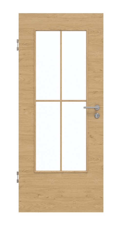 Żywe linie słojów nadają charakter dekoru Authentic Asteiche Queri podkreślają jego żywy, rustykalny wygląd. Prosta rama z poprzeczkami dzieli otwór szklany na cztery prostokąty o jednakowych wymiarach.