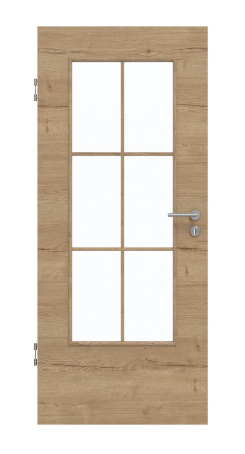 Dzięki realistycznym liniom rocznym i sękom widocznym na dekorze autentyczna dąb rysunkowy poziomy, uzyskuje się naturalny wygląd, który wprowadza przytulność do Twoich pomieszczeń. Ciemne pokoje cieszą się dodatkowym światłem, które może wpadać przez duży otwór świetlny. Delikatna rama z przegrodami dzieli szkło na sześć równych sekcji.