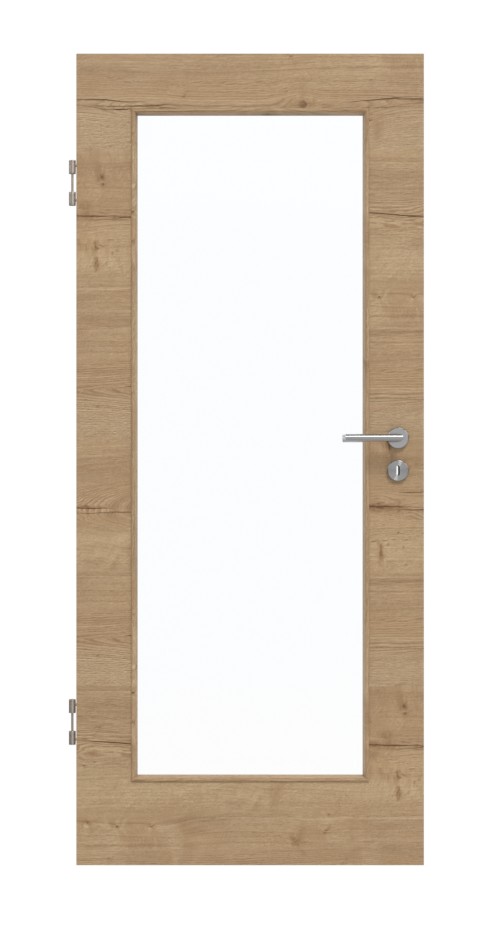 Wytrzymałe drzwi wewnętrzne w dekorze HPL Quer Authentic Risseiche z pięknym przeszkleniem: