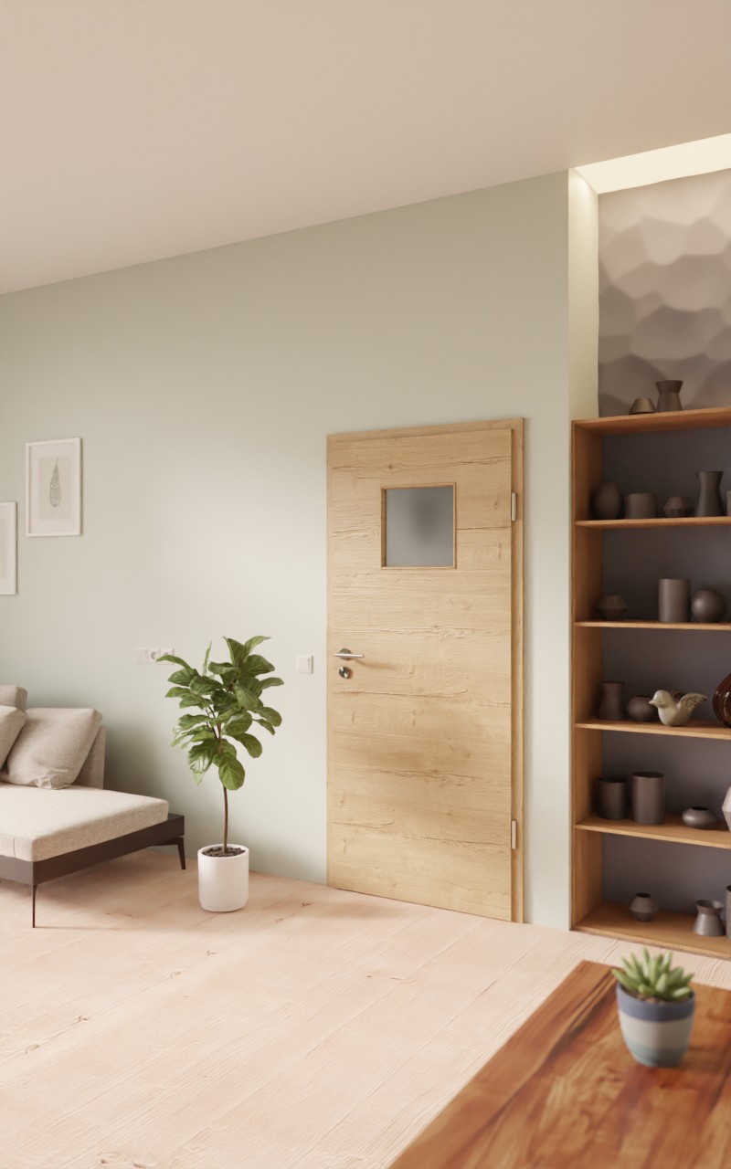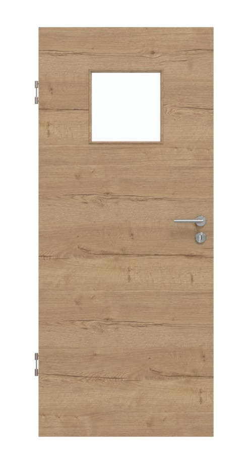 Stylowe drzwi wewnętrzne w dekorze HPL Quer Authentic Risseiche z eleganckim przeszkleniem: