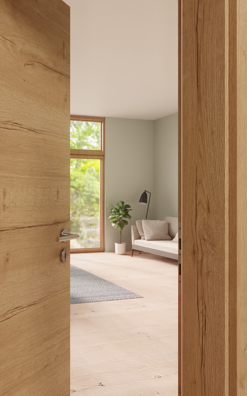 Stylowa drzwi wewnętrzne w dekorze HPL Authentic Risseiche w poziomie do pomieszczeń mieszkalnych lub biurowych: