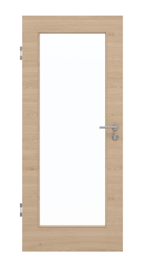 Zapraszające drzwi pokojowe w dekorze HPL Quer Authentic Achat z eleganckim przeszkleniem: