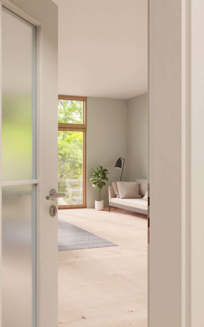 Dzięki białej barwie i dyskretnym liniom dekor Quer Authentic Bianco pasuje do każdego wystroju wnętrza. Ciemne pomieszczenia stają się jaśniejsze i bardziej przyjazne dzięki wycięciom na szybę z ramami szprosowymi.