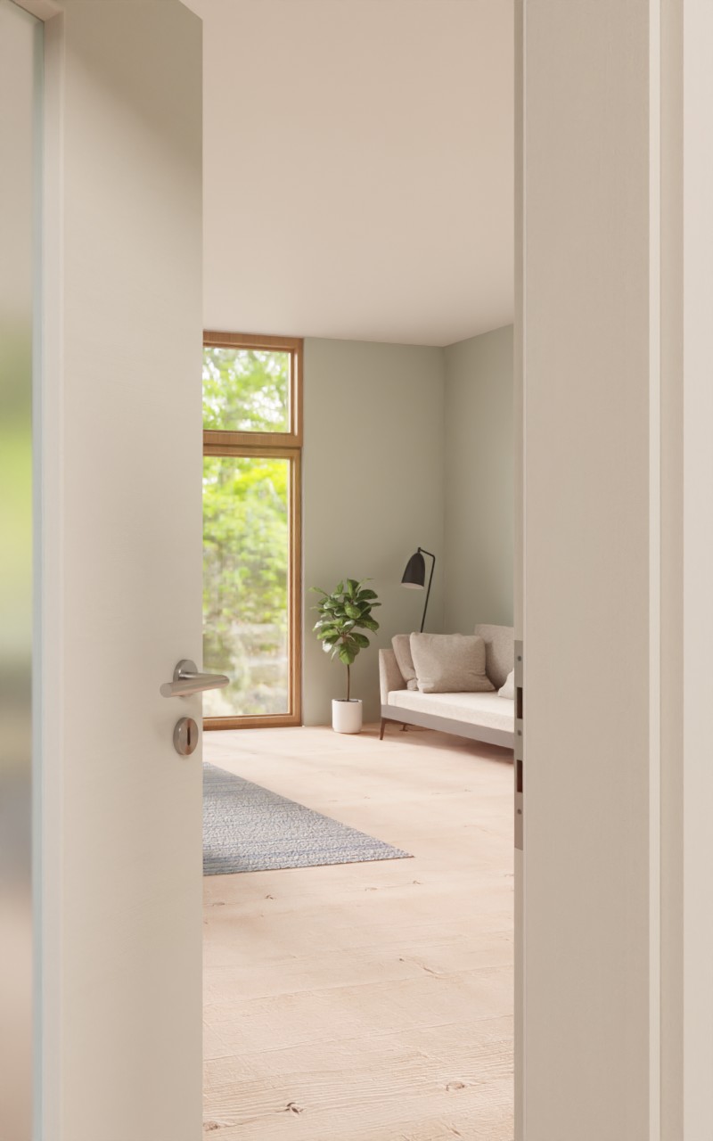 Atrakcyjne drzwi pokojowe w dekorze HPL Quer Authentic Bianco z eleganckim przeszkleniem: