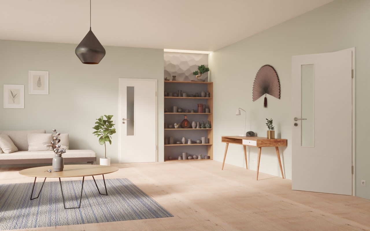 Ponadczasowe drzwi wewnętrzne w dekorze HPL Quer Authentic Bianco o grubości skrzydła drzwiowego wynoszącej około 40 mm: