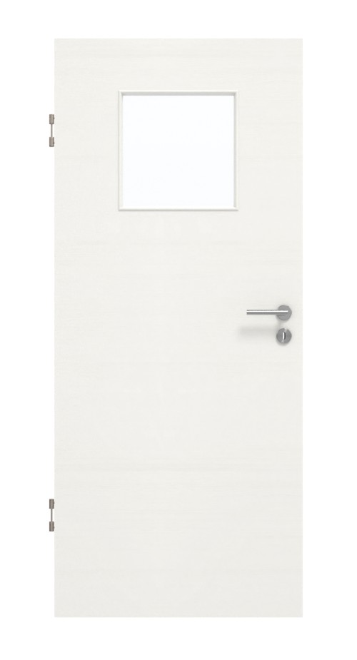 Zapraszające drzwi pokojowe w dekorze HPL Quer Authentic Bianco z eleganckim przeszkleniem: