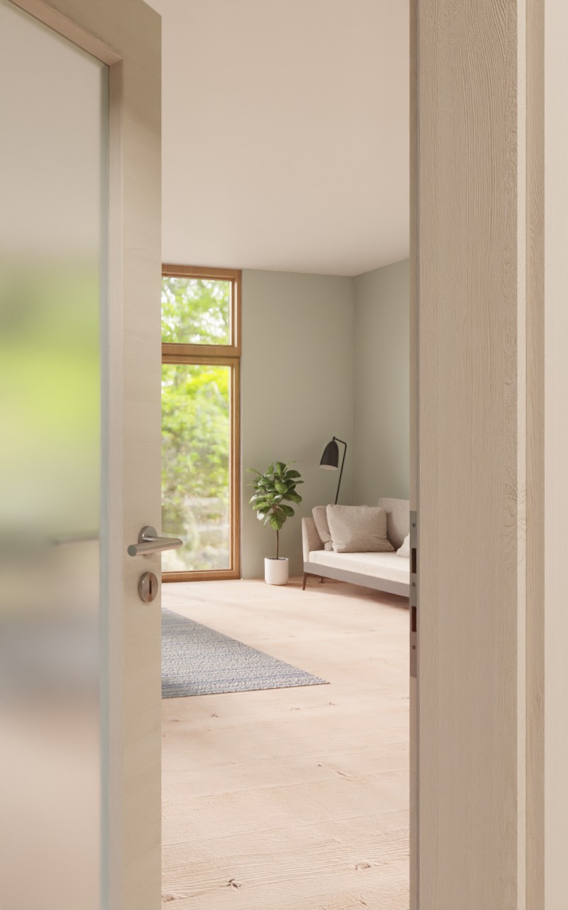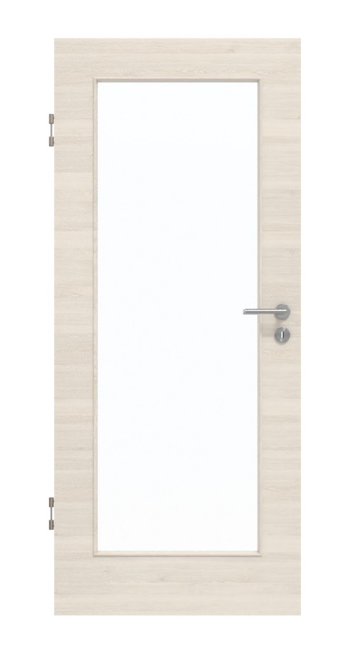 Zapraszające drzwi wewnętrzne w dekorze HPL Quer Authentic Perl z pięknym przeszkleniem: