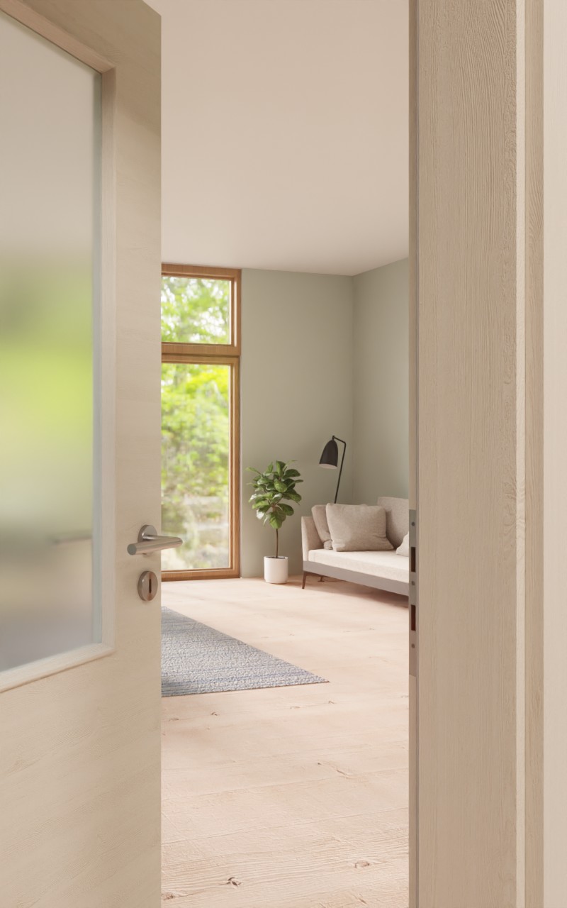 Drzwi wewnętrzne najwyższej jakości w dekorze HPL Quer Authentic Perl z atrakcyjnym przeszkleniem: