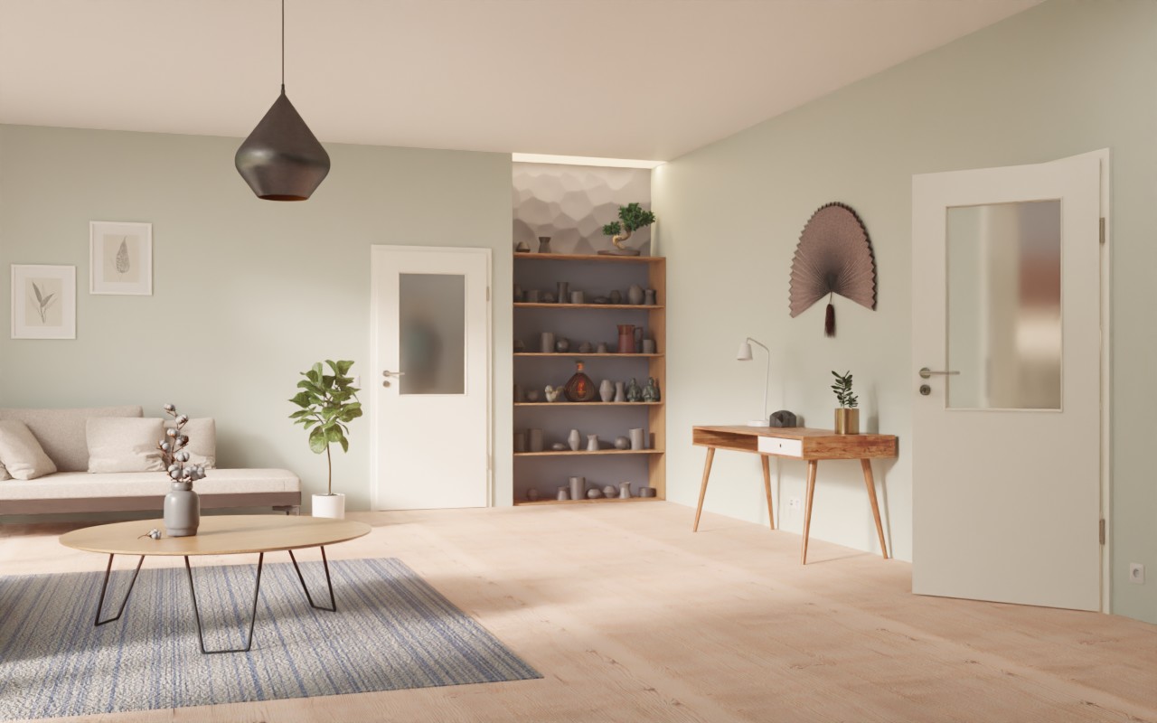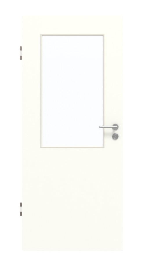 Drzwi wewnętrzne odporne na zarysowania w dekorze HPL U11026SD kryształowa biel z eleganckim przeszkleniem: