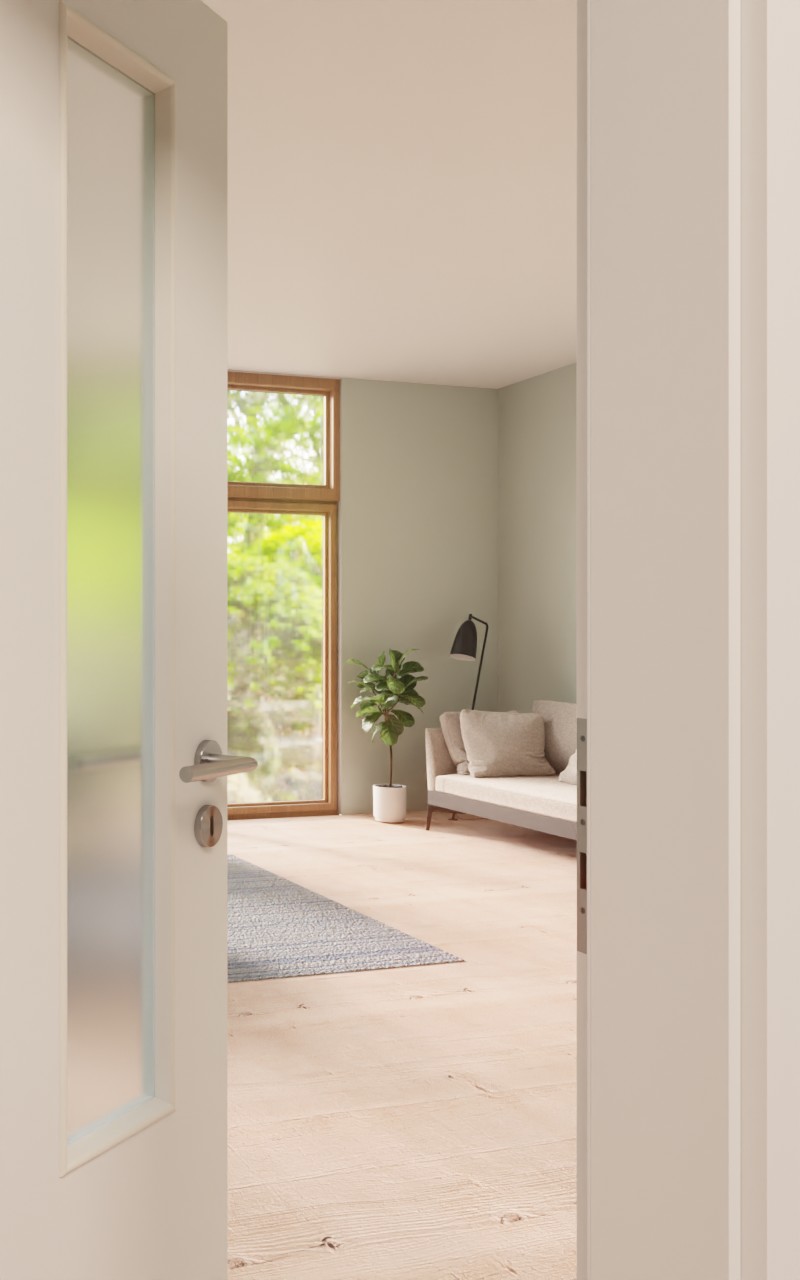 Zapraszające drzwi wewnętrzne w dekorze HPL U11209SD Edelweiß z pięknym przeszkleniem: