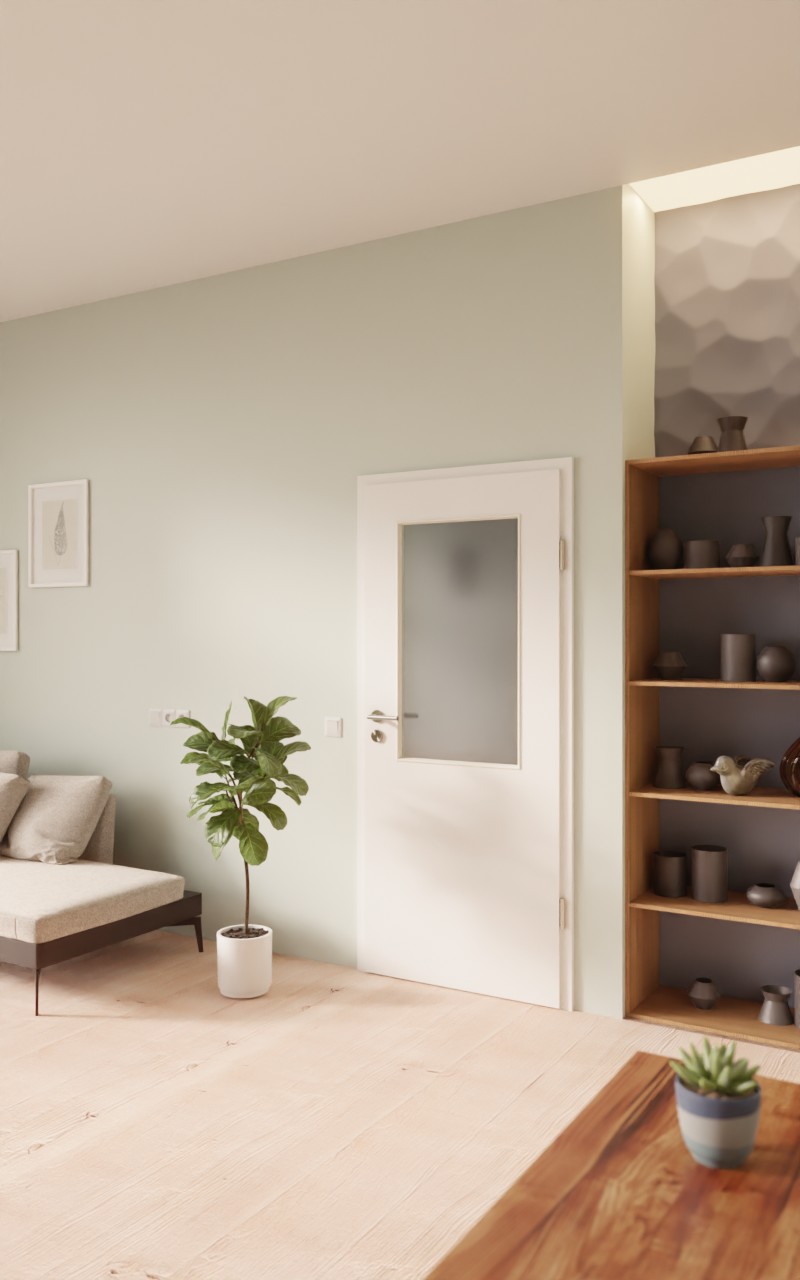 Zapraszające drzwi pokojowe w dekorze HPL U11209SD Edelweiß z eleganckim przeszkleniem: