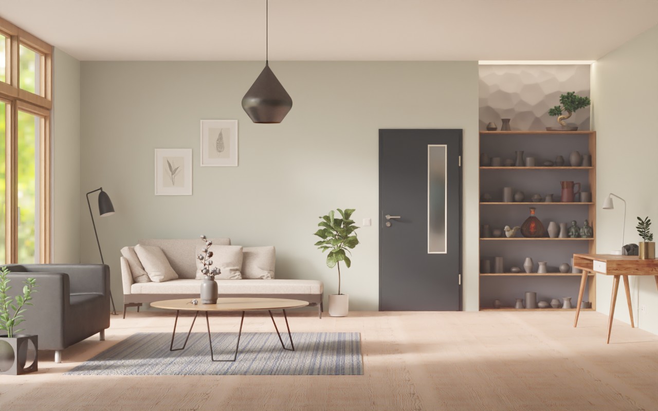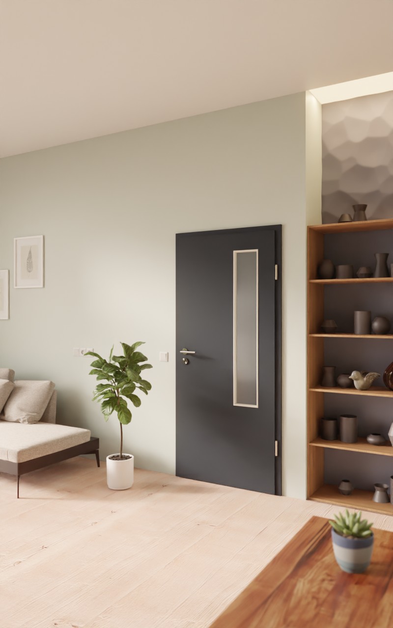Zapraszające drzwi pokojowe w dekorze HPL U12000SD Wulkan Czarne z pięknym przeszkleniem:
