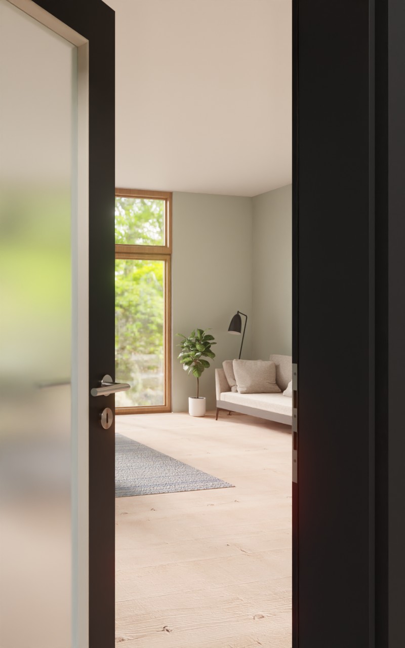 Drzwi wewnętrzne najwyższej jakości w dekorze HPL U12000SD Wulkan czarny o grubości skrzydła drzwiowego wynoszącej około 40 mm: