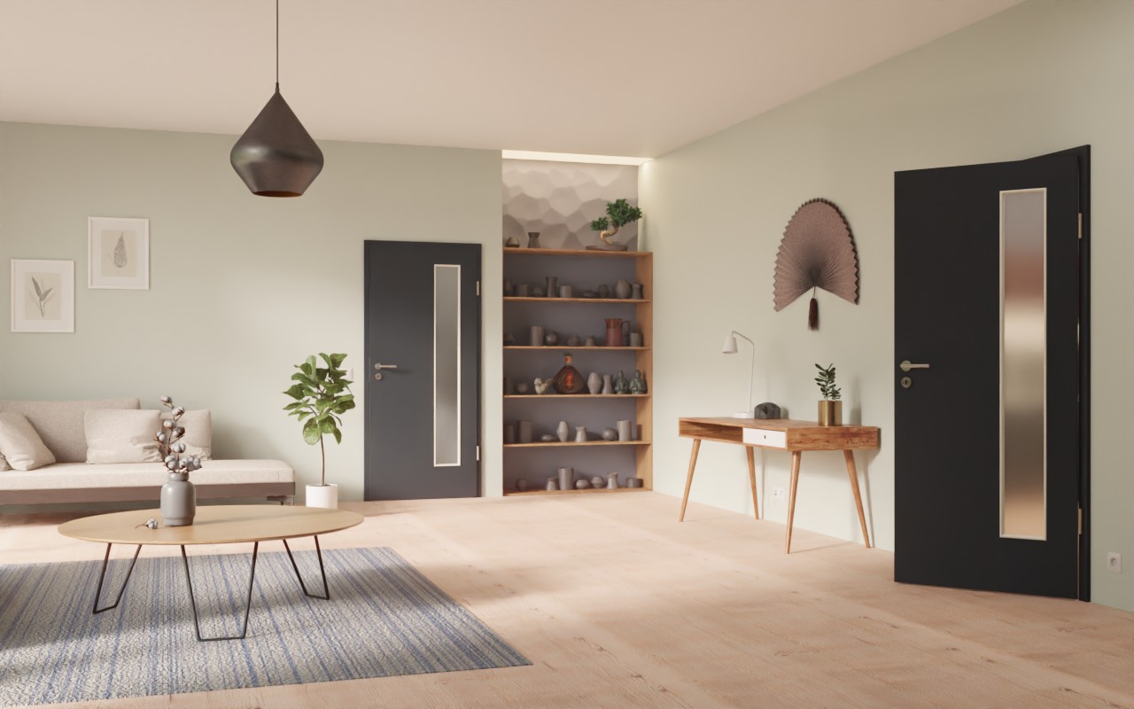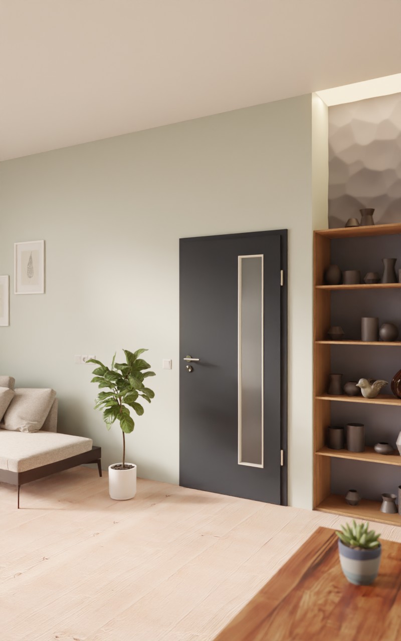 Ponadczasowe drzwi wewnętrzne w dekorze HPL U12000SD Wulkanowa czerń z atrakcyjnym przeszkleniem: