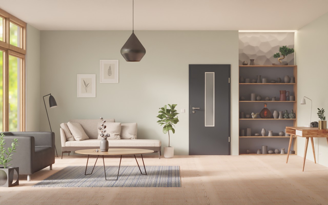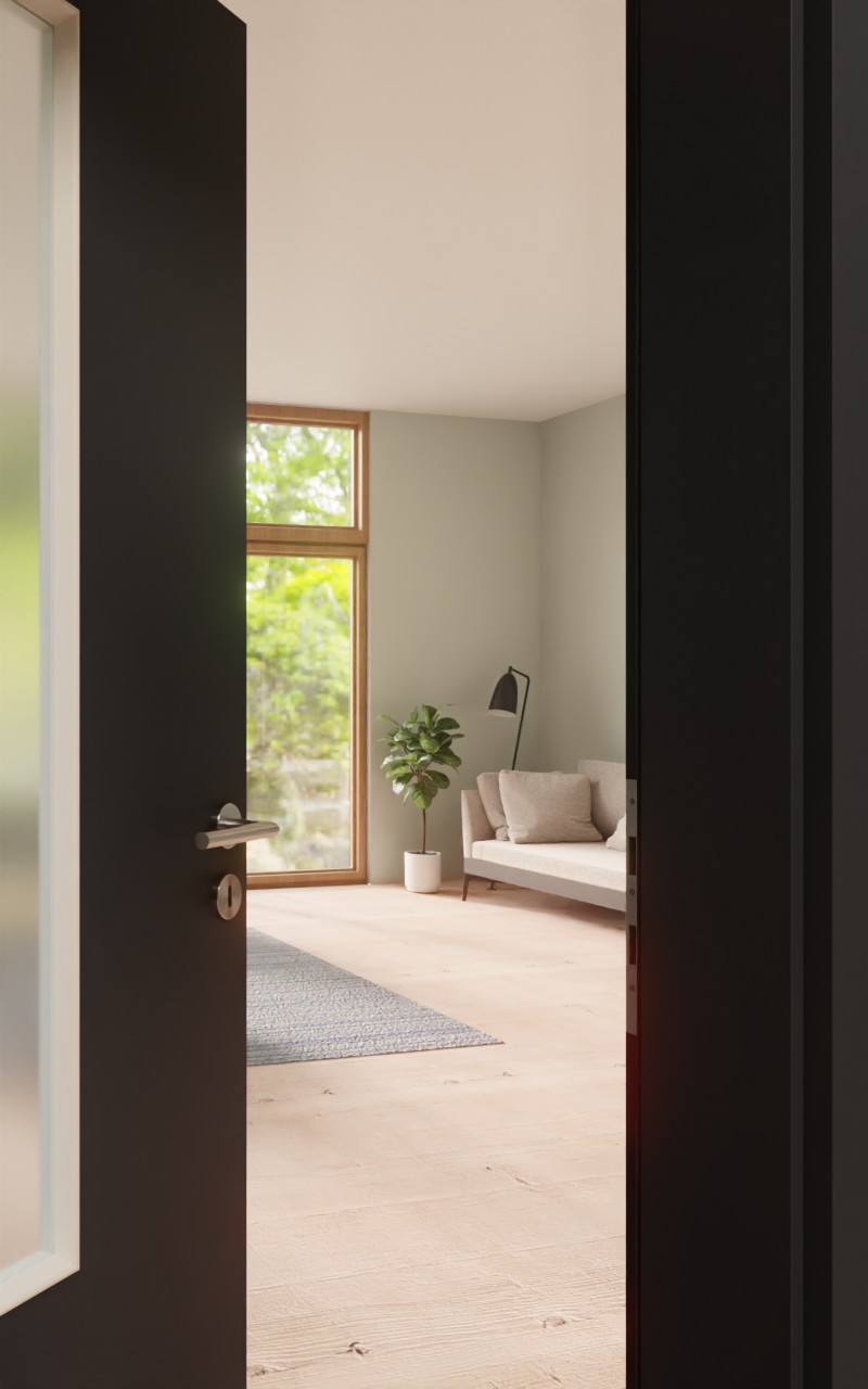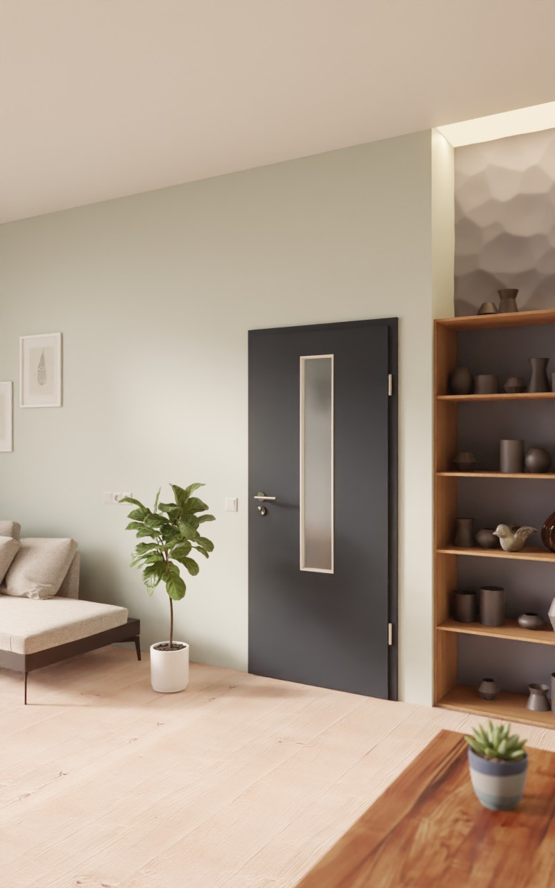 Drzwi wewnętrzne najwyższej jakości w dekorze HPL U12000SD Vulkanschwarz z eleganckim przeszkleniem: